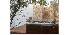 Villa Sharm has a large garden with palm trees and tropical flowers surrounding it. To the side of the villa are natural stone steps which lead to the pool and BBQ area. The rear garden offers some shade, perfect for the summer months whilst the front of the villa has endless sun.